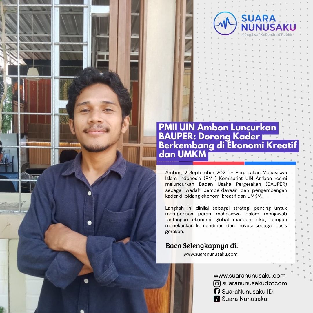 SUARANUNUSAKU.COM | Ambon, 2 September 2025 – Pergerakan Mahasiswa Islam Indonesia (PMII) Komisariat UIN Ambon resmi meluncurkan Badan Usaha Pergerakan (BAUPER) sebagai wadah pemberdayaan dan pengembangan kader di bidang ekonomi kreatif dan UMKM.